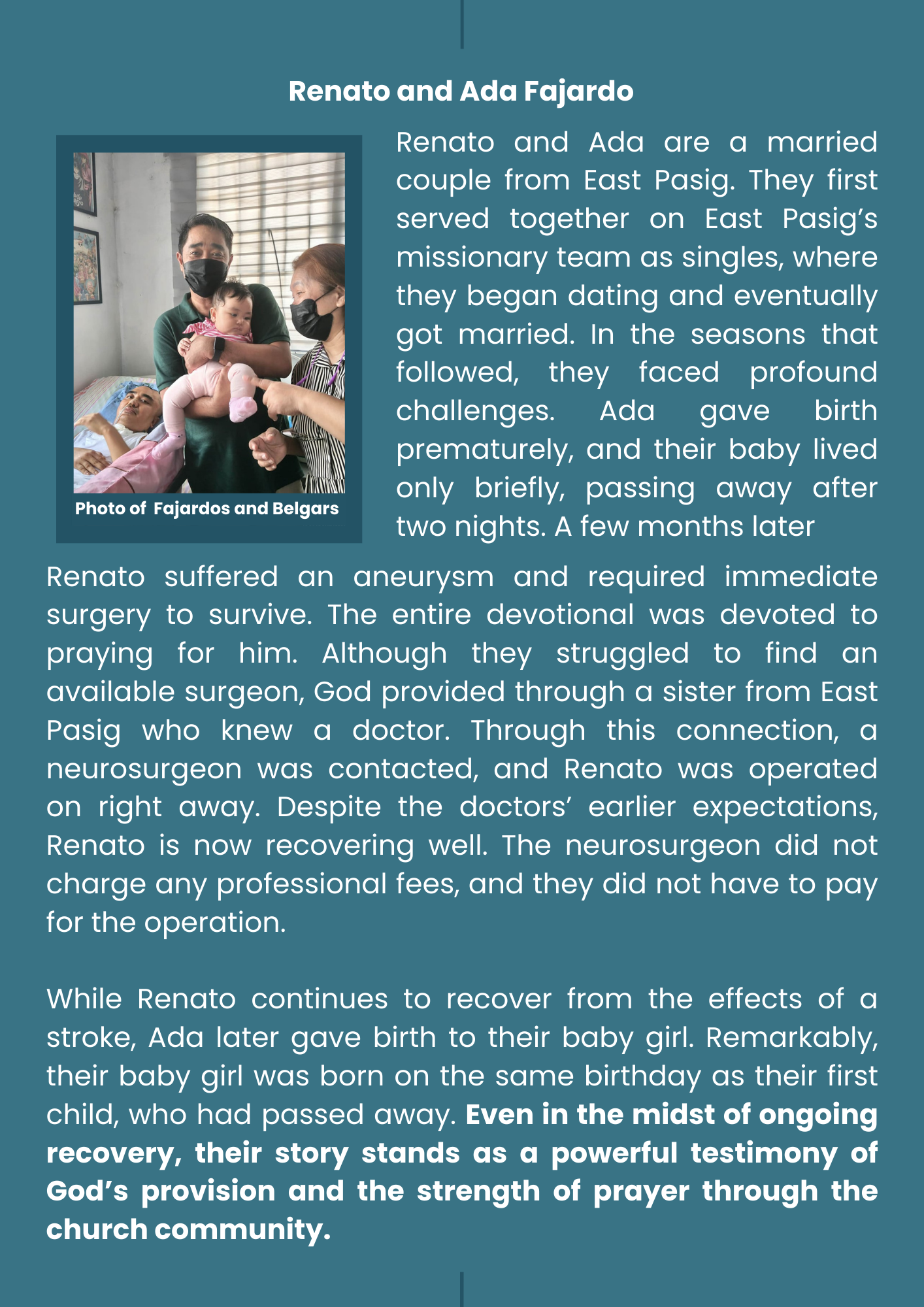 In the midst of these trials, Jojo and Pechay responded with what they knew to do—to pray continually and trust God to sustain them.